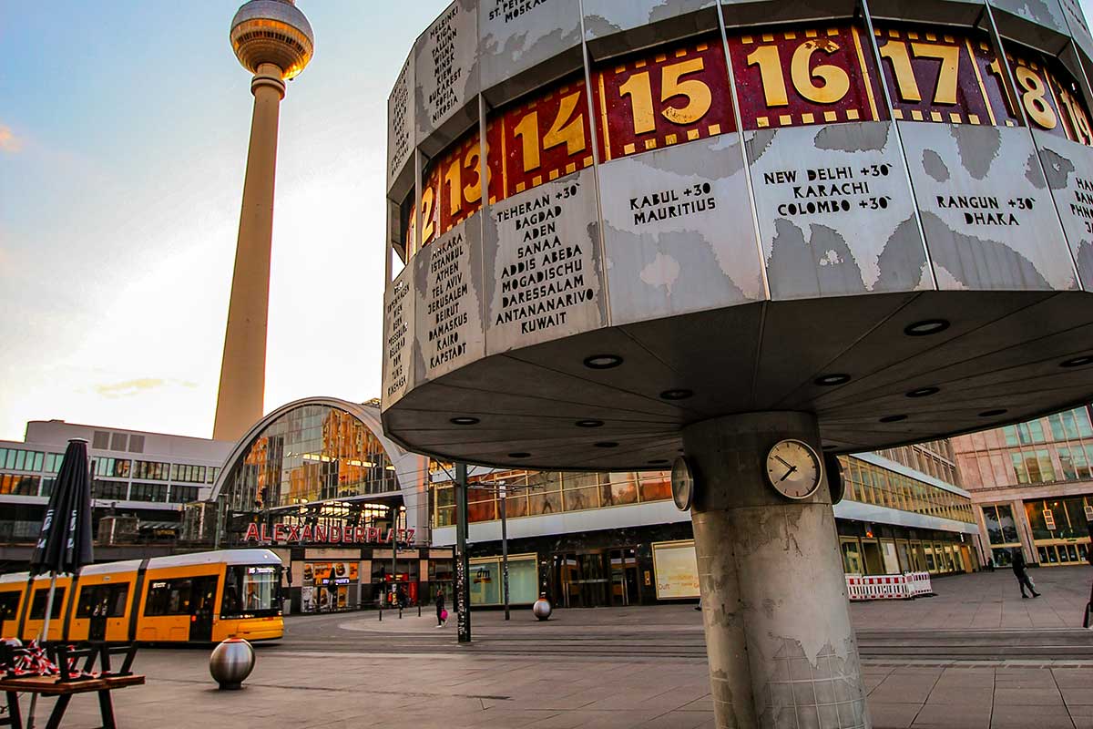 Here, you’ll find many traces of the former East Germany, such as the Weltzeituhr, meaning World Clock in English. Installed in 1969, this rotating cylinder shows the time in major cities around the world and remains a popular meeting spot in the square.