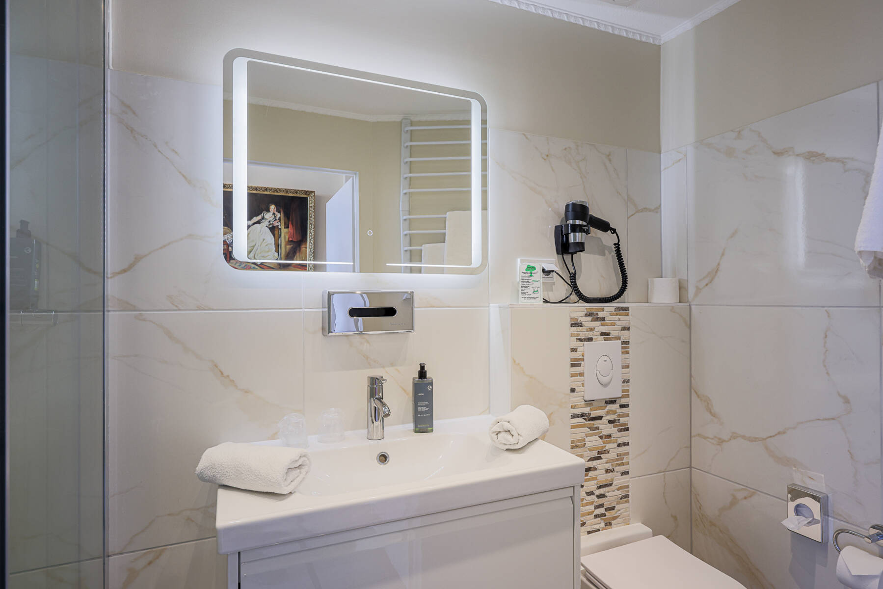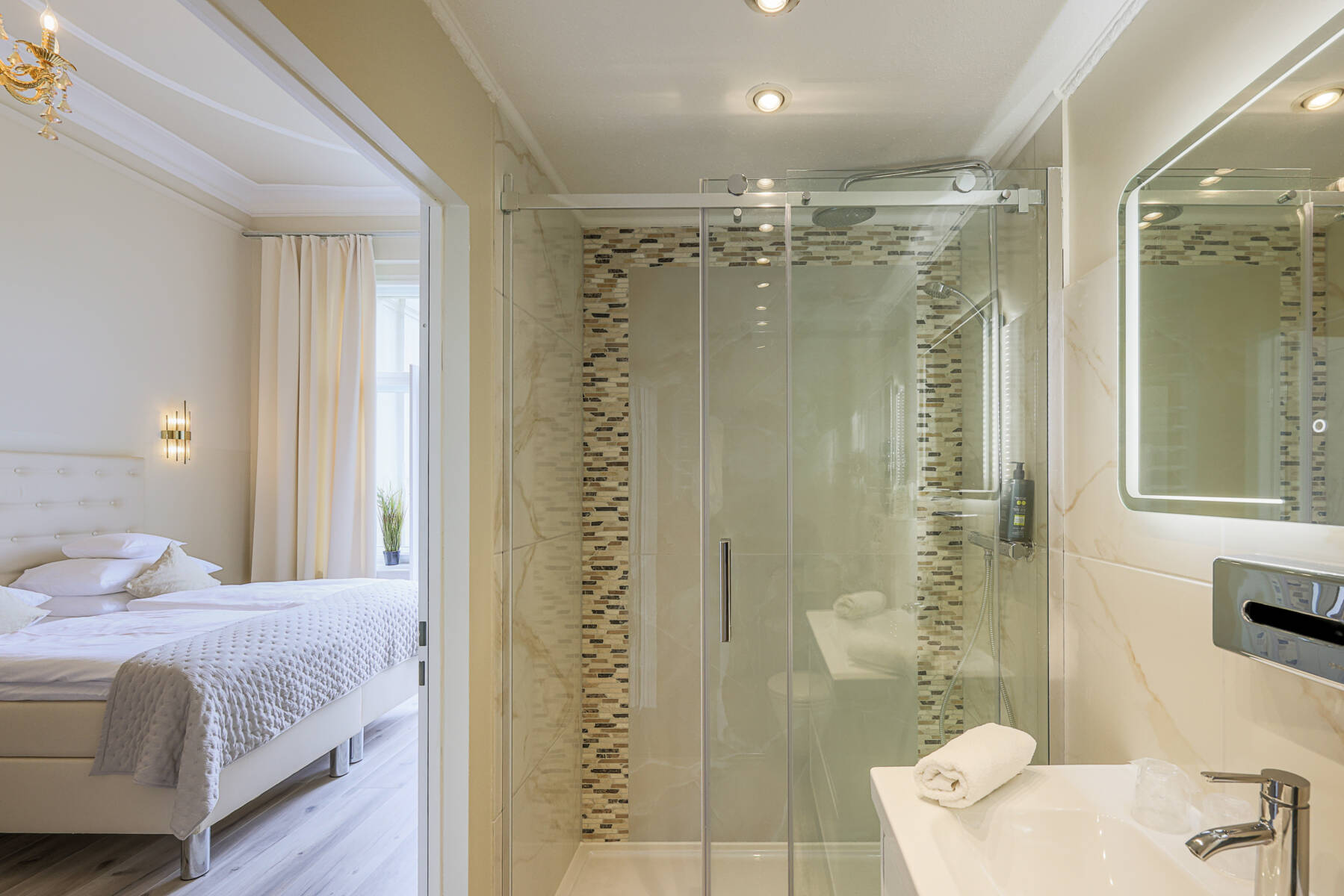 Nuestra habitación doble superior con balcón es más que un sitio donde dormir: es un lugar para vivir. Empiece el día con un expreso recién hecho en la cafetera italiana y saboréelo en la acogedora sala de estar o en su balcón, donde podrá disfrutar de impresionantes vistas de los tejados de Berlín. Luego, salga y explore la ciudad a su ritmo, sabiendo que su espaciosa habitación le estará esperando cuando quiera volver a descansar.